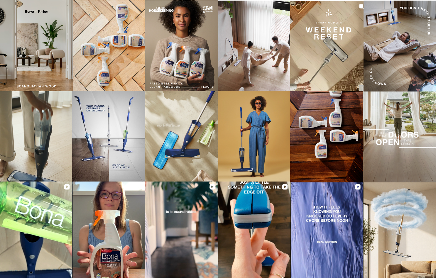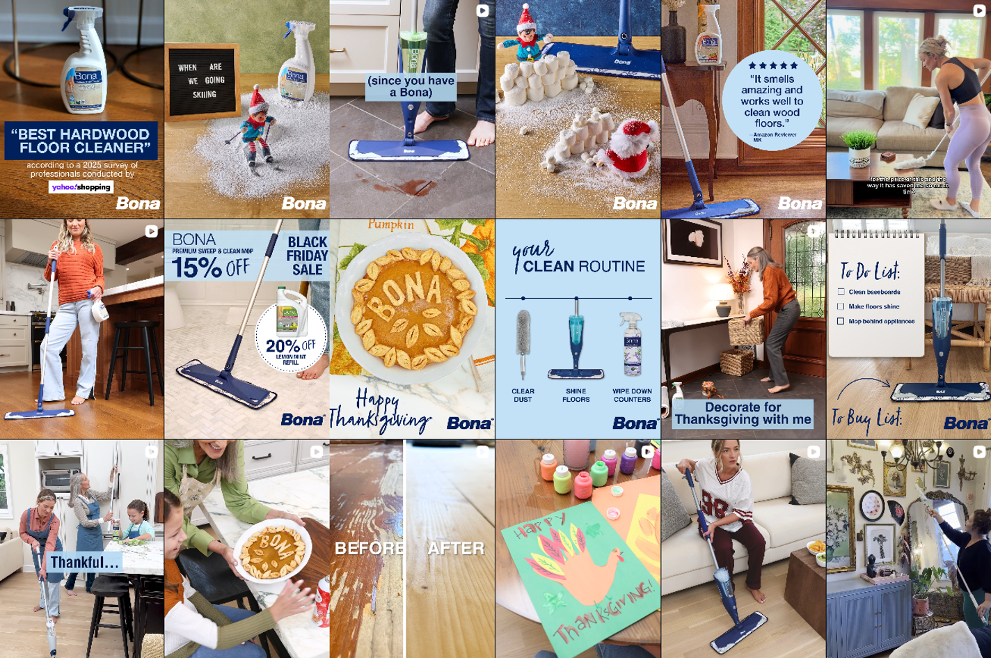 Led Bona’s organic content strategy end-to-end from competitive and consumer research to defining content pillars and brand identity. Directed designers and owned full production from pre-pro through final execution, transforming the brand into a more premium, distinguishable presence.