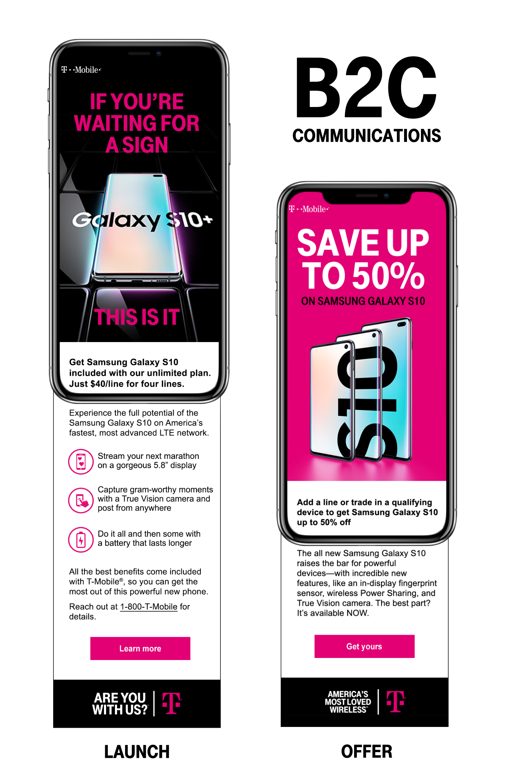 T-Mobile needed an impactful email campaign to announce the release of their new Samsung Galaxy phone. The challenge was to create a visually compelling design that seamlessly balanced multiple brand identities while maintaining T-Mobile’s distinct presence.